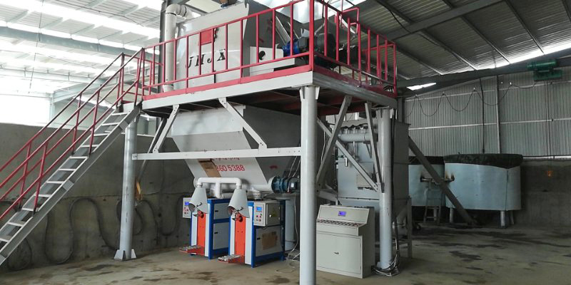 該生產(chǎn)線針對(duì)石膏砂漿粉體比重較大、具有一定粘結(jié)性等特點(diǎn),在傳統(tǒng)干粉混合生產(chǎn)線基礎(chǔ)上進(jìn)行改良創(chuàng)新。在保證設(shè)備穩(wěn)定性、稱重精度、日產(chǎn)量基礎(chǔ)上,對(duì)設(shè)備進(jìn)行優(yōu)化,使其更符合石膏基產(chǎn)品的生產(chǎn)。